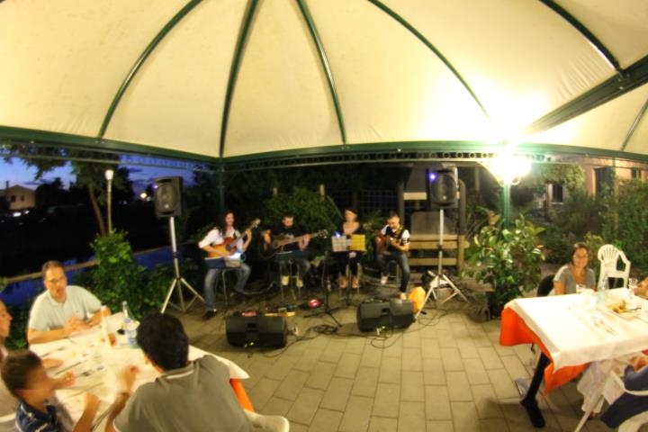 Durante il periodo estivo, un tocco di magia viene offerto dalla possibilità di cenare sotto una vela su di una terrazza a ridosso del fiume. Lo scorrere lento dell'acqua, il fresco degli alberi, il tenero volo delle anitre , contribuiranno a farvi dimenticare lo stress del giorno e vi aiuteranno ad apprezzare l'antica via che animava la Riviera del Brenta al tempo dei Dogi Veneziani. E' consigliabile la prenotazione telefonica, e la consultazione Internet.